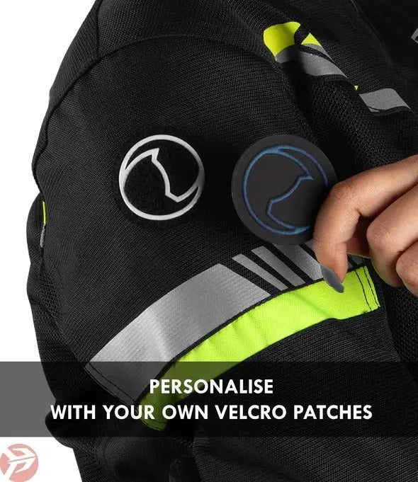 - Increased Day Time Visibility: Hi-viz trims on chest, arms and back