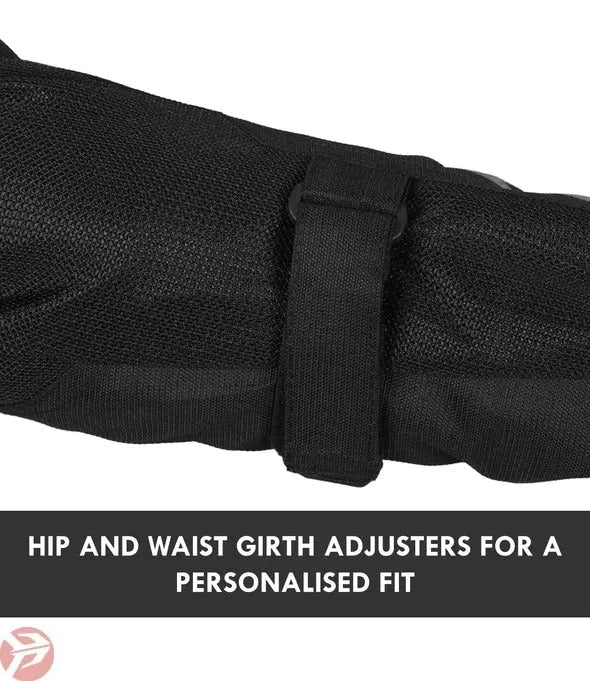 - Abdomen Girth Adjusters: A two-stop adjuster on either side of the abdomen gives a snug fit
